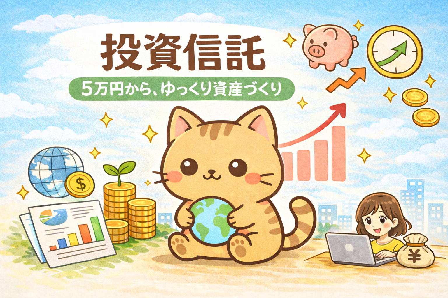 「もう少し、やさしい方法はないかな」 そう思って調べ始めたときに出会ったのが、 投資信託でした。